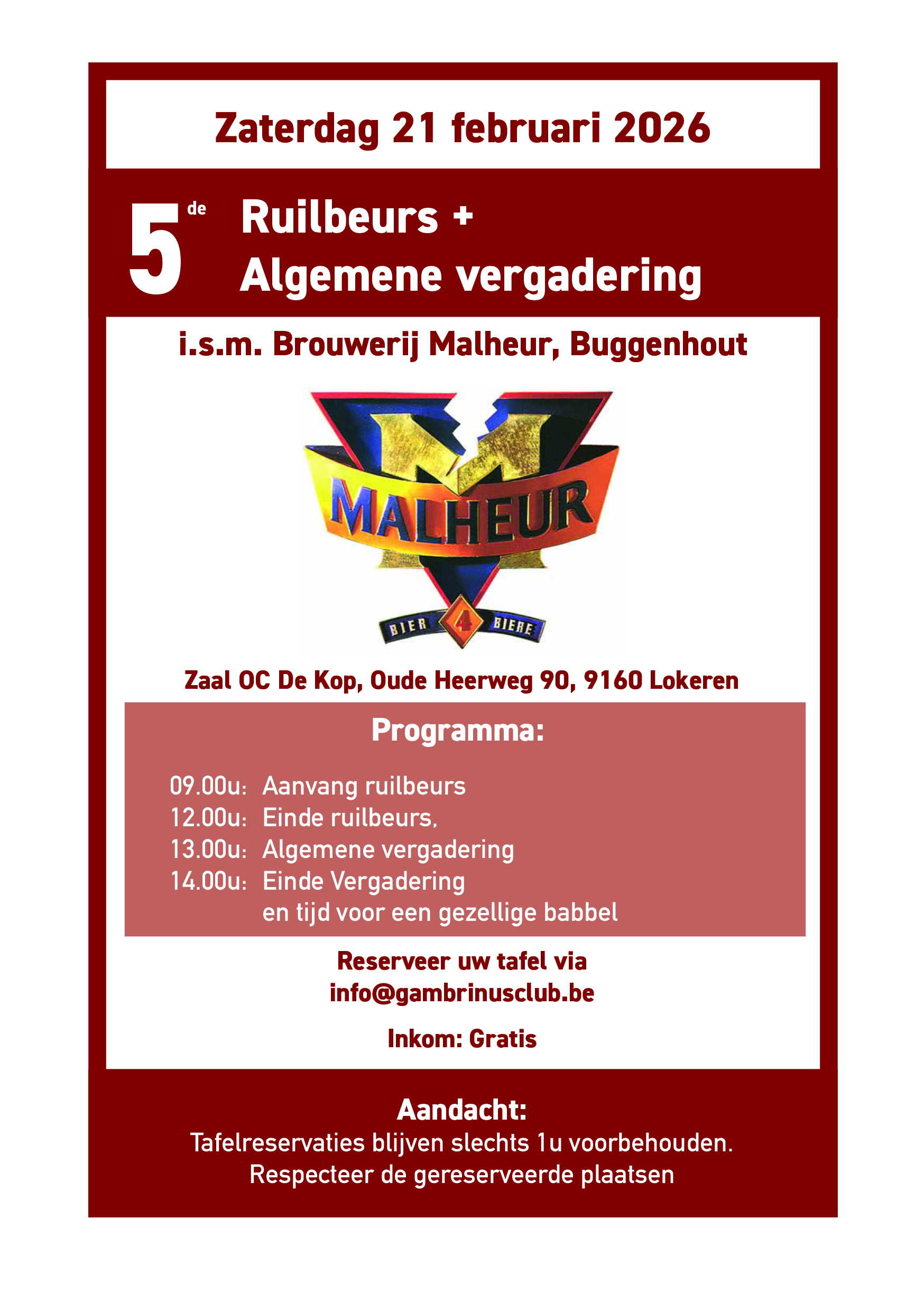 Op zaterdag 28 februari hebben we afspraak in Lokeren voor onze eerste beurs van 2026.